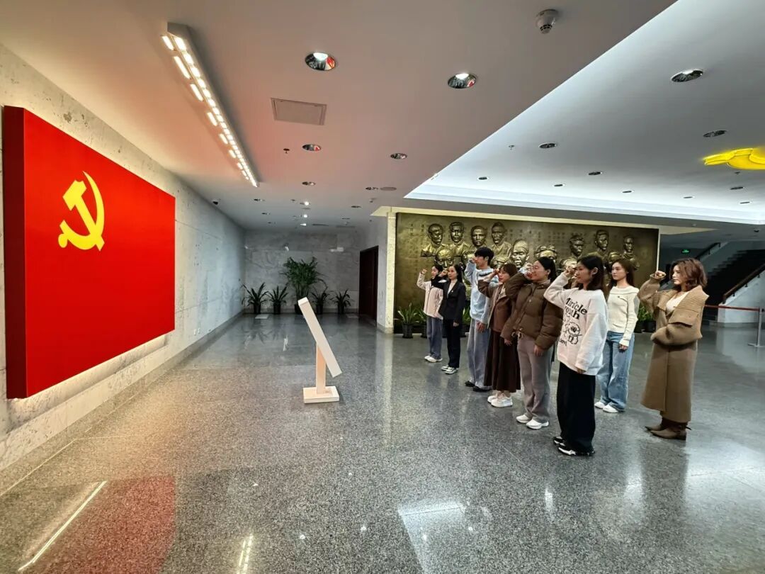 师生党员一行先后走进中共一大会址纪念馆、中国社会主义青年团中央机关旧址纪念馆和中国共产党代表团驻沪办事处旧址,重温建党初期的光辉历程。在中共一大会址,全体党员庄严宣誓,重温入党誓词;集体诵读“习金句”,学唱浙江红色歌谣《红军歌》,在沉浸式学习中坚定理想信念。