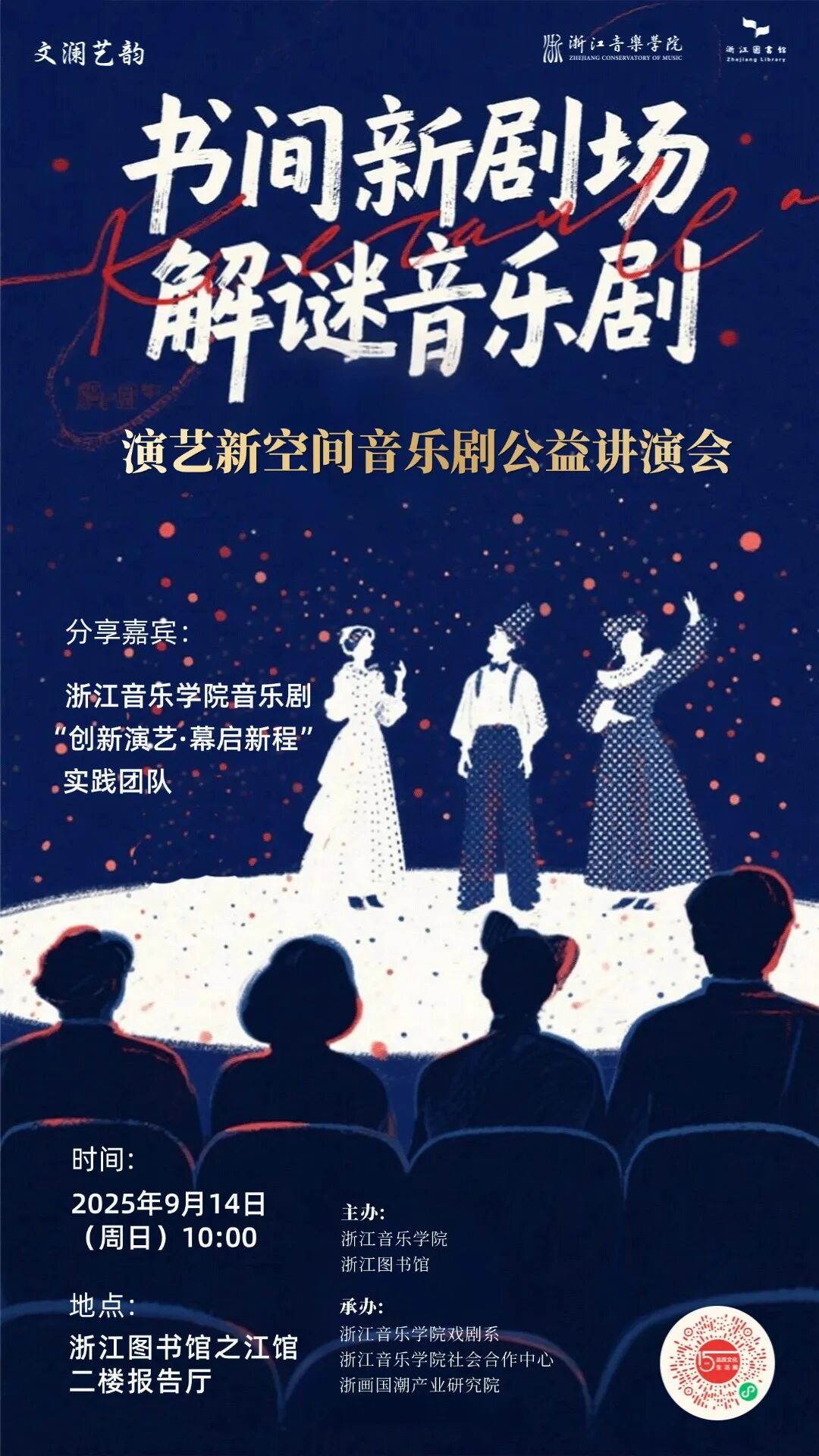 为让实践成果惠及更多群体,团队积极将调研报告进行成果转化,将于9月14日举办两场“演艺新空间音乐剧公益讲演会”:一场走进浙江图书馆,一场走进中国美术学院。讲演会将采用“理论讲述+音乐剧片段演唱”的形式,既分享江浙沪皖四地调研成果,也通过现场演绎,让观众直观感受新空间音乐剧的魅力。“我们希望通过讲演会,让调研成果从‘报告’走向‘大众’,同时为文化公益传播贡献青春力量。”实践团队指导老师吴波表示。