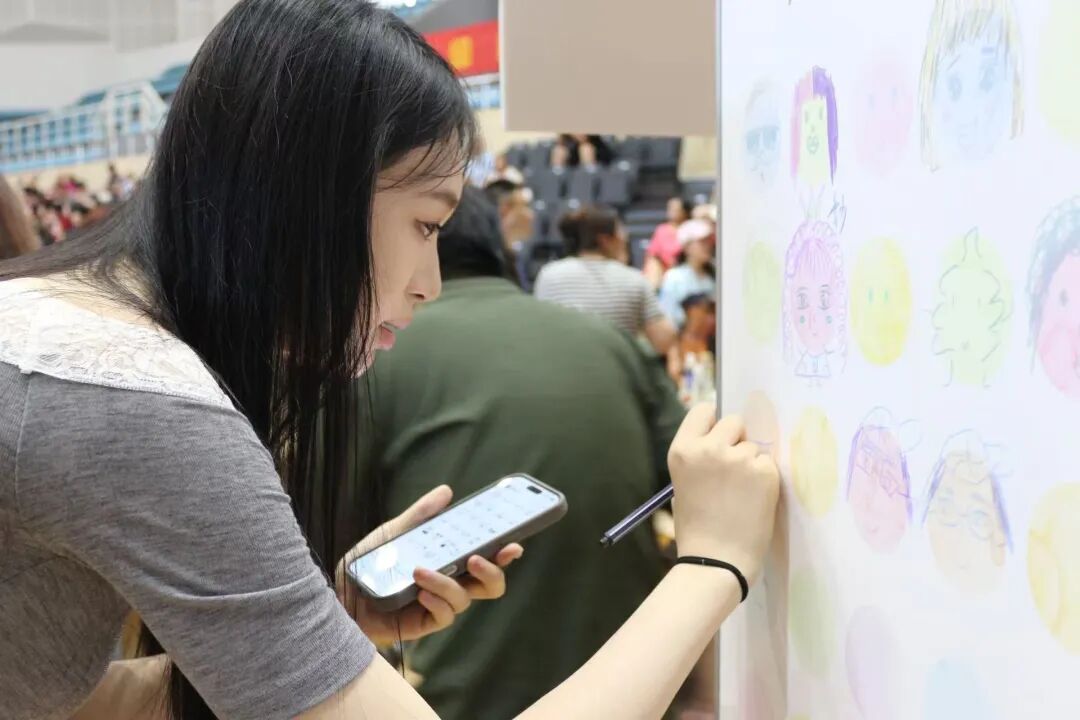 报到点旁的笑脸墙和打卡框,今天绝对是“人气担当”