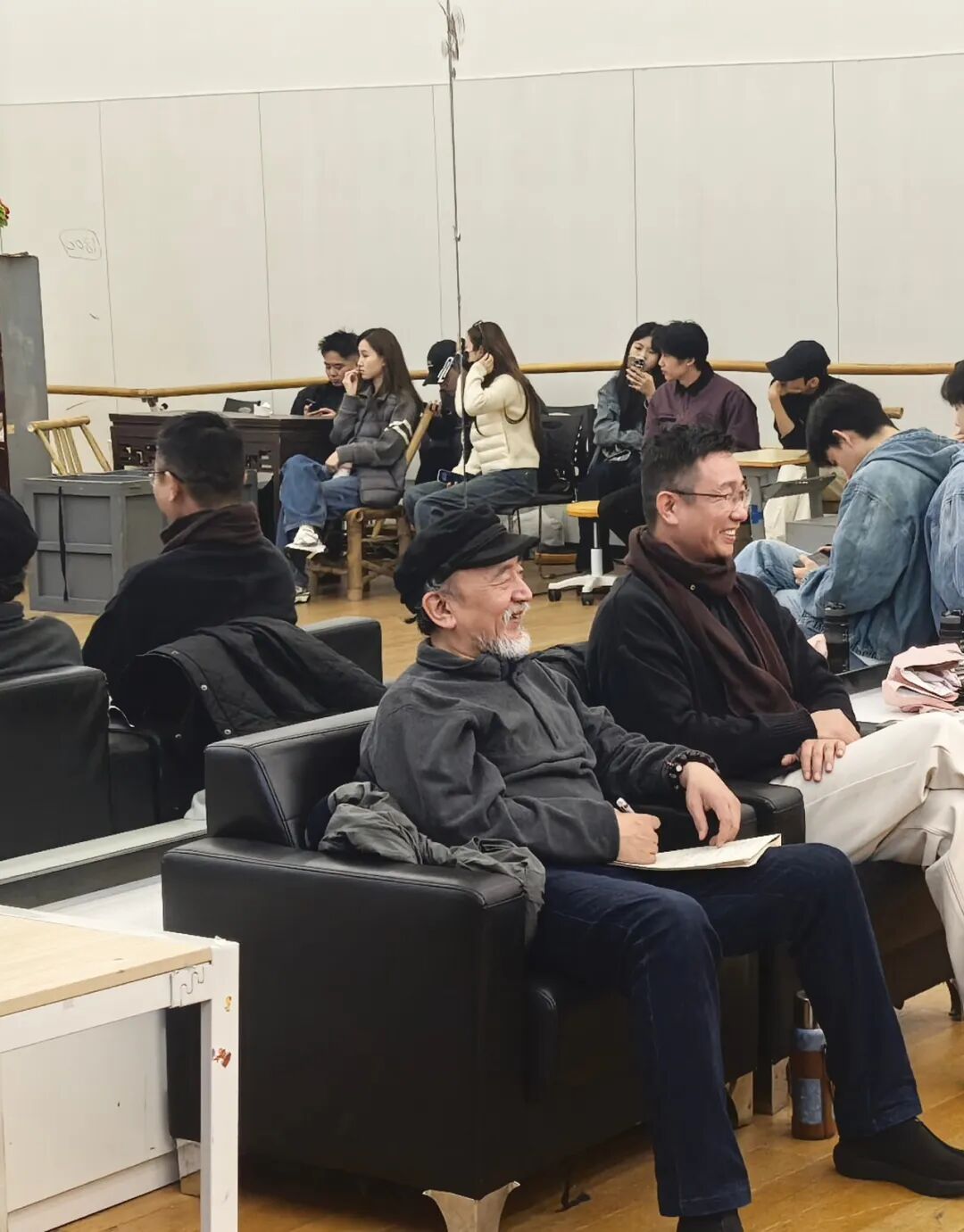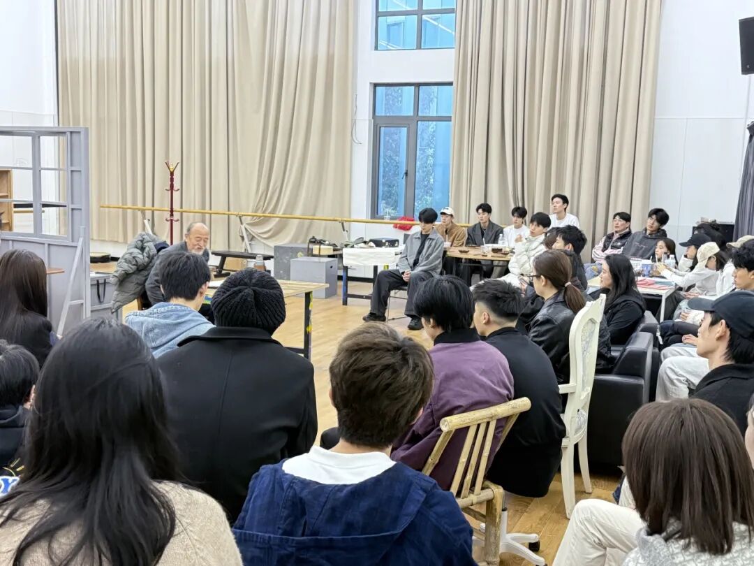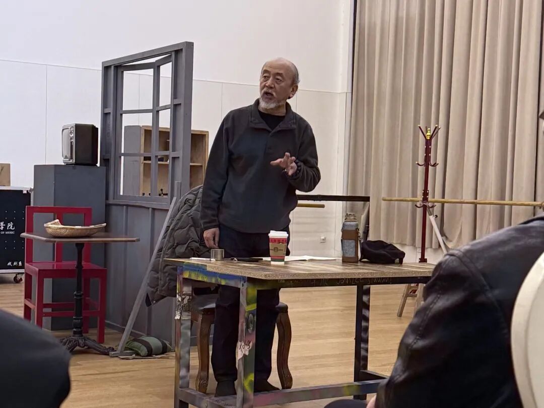 排练现场,王劲松老师全程细致观察,从角色内心的情感挖掘到舞台呈现的细节处理,从个人表演技巧的打磨到全班集体协作的默契配合,再到对作品背后文化内涵的深度解读,他将自己多年的表演经验与创作心得倾囊相授,给予同学们充分的肯定与极具针对性的指导。