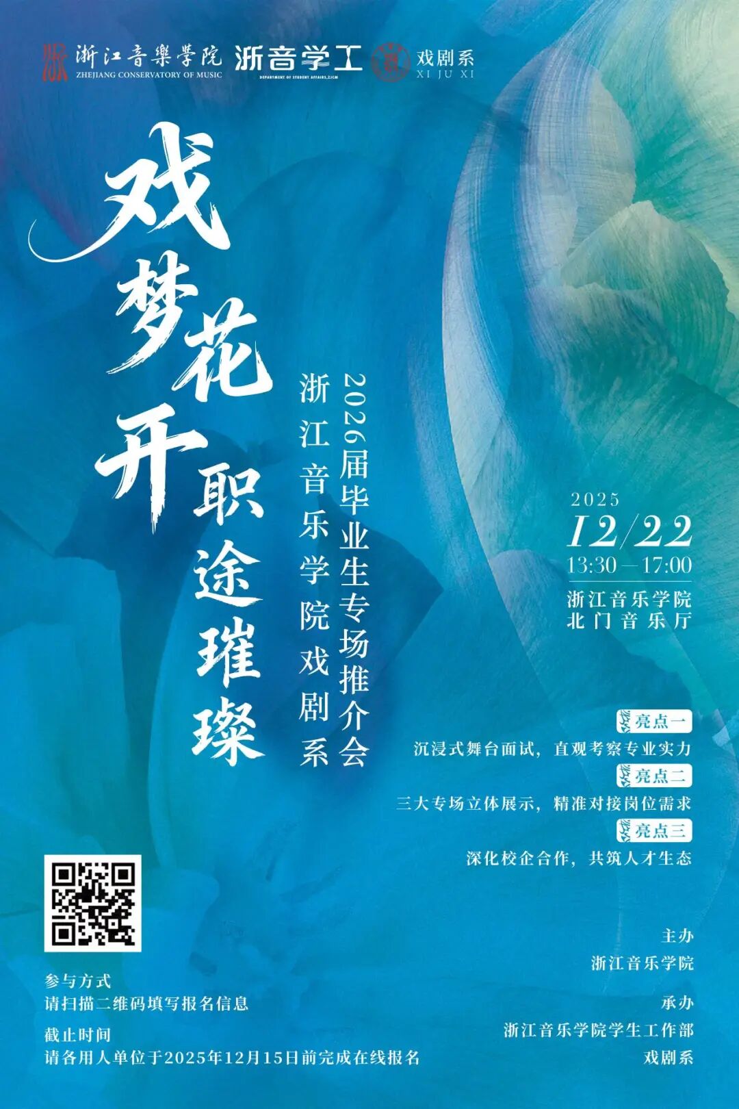 我们期待您的到来,在冬日的浙音校园,共赏“戏梦花开”,共启“职途璀璨”。