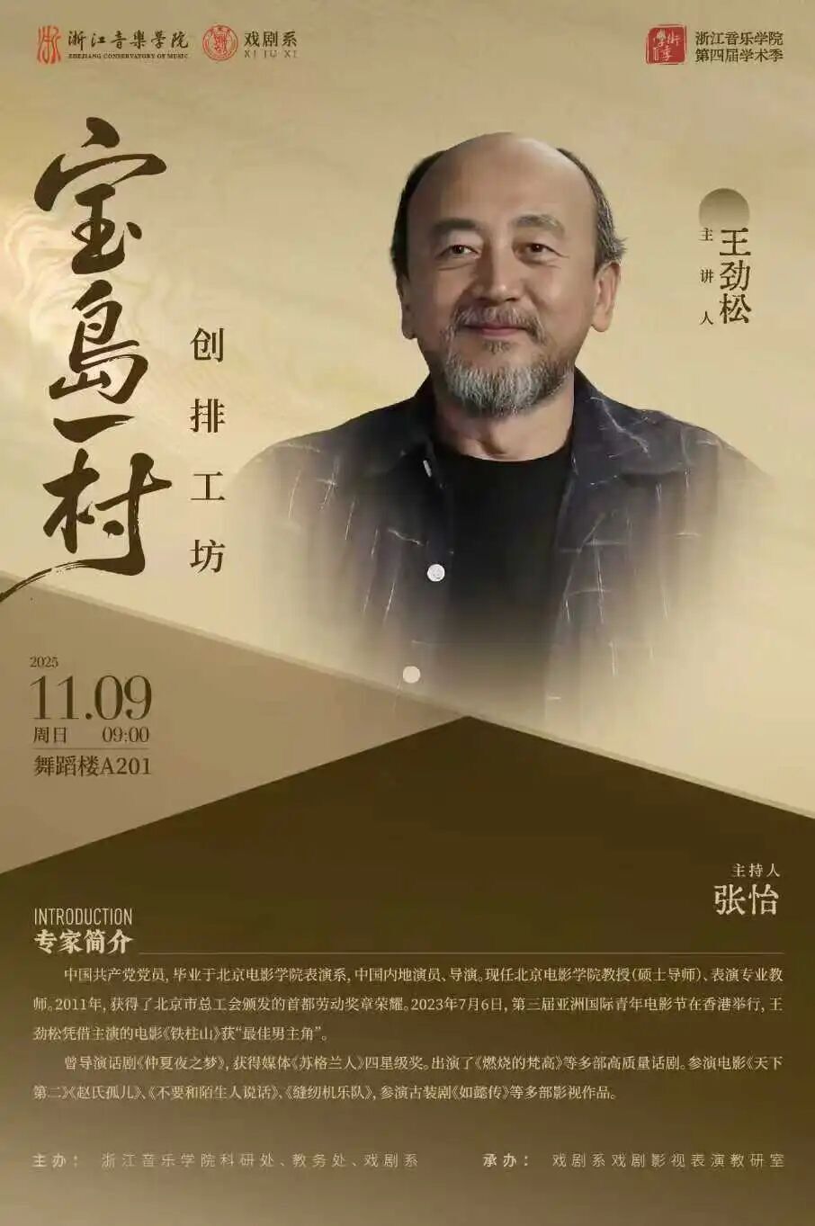 <!DOCTYPE html> <html> <head> </head> <body> <p style="line-height: 1.5; text-indent: 2em;"><span style="font-family: FangSong, serif; font-size: 18px;">当深耕舞台与荧幕的表演匠人,遇上承载半世纪乡愁的经典剧目;当北电教授的教学智慧,碰撞浙音学子的青春创作力——11月9日,浙江音乐学院舞蹈楼207排练厅将迎来一场表演艺术的深度对话!北京电影学院王劲松老师重磅坐镇,为戏剧系影视表演221班毕业大戏《宝岛一村》专属开设创排工坊,带学子们拆解角色灵魂,体悟表演真谛。</span></p> <p style="line-height: 1.5; text-indent: 2em;"> </p> <p style="line-height: 1.5; text-indent: 2em;"><img style="display: block; margin-left: auto; margin-right: auto;" src="/attachment/20251124/ba664defdd9774bbe51defe28281ed50/600.jpeg" data-imgfileid="100020800" data-s="300,640" data-type="jpeg" data-w="1080" data-ratio="0.6648148148148149" data-src="/attachment/20251124/ba664defdd9774bbe51defe28281ed50.jpeg" /></p> <p> </p> <p> </p> <p> </p> <p> </p> <p> </p> <p> </p> <p> </p> <p style="text-indent: 2em; line-height: 1.5;"><span style="font-family: FangSong, serif; font-size: 18px;">王劲松:以匠心铸演技,以师者育新人</span></p> <p style="text-indent: 2em; line-height: 1.5;"> </p> <p style="text-indent: 2em; line-height: 1.5;"><span style="font-family: FangSong, serif; font-size: 18px;">北京电影学院表演教师王劲松教授,是一位在表演艺术教育、舞台戏剧及影视创作领域均享有声誉的专家。他为我国表演艺术领域培养了不少人才。</span></p> <p style="text-indent: 2em; line-height: 1.5;"> </p> <p> </p> <p><img style="display: block; margin-left: auto; margin-right: auto;" src="/attachment/20251124/b395c337065b1f10661ef0795b3399a5/600.jpeg" data-imgfileid="100020801" data-s="300,640" data-type="jpeg" data-w="1080" data-ratio="1.499074074074074" data-src="/attachment/20251124/b395c337065b1f10661ef0795b3399a5.jpeg" /></p> <p> </p> <p><img style="display: block; margin-left: auto; margin-right: auto;" src="/attachment/20251124/7bb1aedb50690a12e1082bd0ac63977e/600.jpeg" data-imgfileid="100020799" data-s="300,640" data-type="jpeg" data-w="1080" data-ratio="0.625" data-src="/attachment/20251124/7bb1aedb50690a12e1082bd0ac63977e.jpeg" /></p> <p><img style="display: block; margin-left: auto; margin-right: auto;" src="/attachment/20251124/dba487a51d906349d51001e41f8640d1/600.jpeg" data-imgfileid="100020797" data-s="300,640" data-type="jpeg" data-w="1024" data-ratio="1.392578125" data-src="/attachment/20251124/dba487a51d906349d51001e41f8640d1.jpeg" /></p> <p> </p> <p style="text-indent: 2em; line-height: 1.5;"><span style="font-family: FangSong, serif; font-size: 18px;">王老师在艺术创作上同样硕果累累,参演了多部备受瞩目的影视作品,如《谁说我不在乎》、《赵氏孤儿》、《天下第二》、《不要和陌生人说话》等。他在话剧舞台上同样塑造了鲜活的角色,例如《王府井》中的喜爷,并在《燃烧的梵高》 等话剧中也有精彩表演。2023年7月6日,第三届亚洲国际青年电影节在香港举行,王劲松凭借主演的电影《铁柱山》获“最佳男主角”。</span></p> <p> </p> <p> </p> <p> </p> <p> </p> <p> </p> <p> </p> <p> </p> <p> </p> <p> </p> <p style="line-height: 1.5; text-indent: 2em;"><span style="font-family: FangSong, serif; font-size: 18px;">创排工坊</span></p> <p style="line-height: 1.5; text-indent: 2em;"><span style="font-family: FangSong, serif; font-size: 18px;">让乡愁有温度,让表演有深度</span></p> <p style="line-height: 1.5; text-indent: 2em;"> </p> <p style="line-height: 1.5; text-indent: 2em;"><span style="font-family: FangSong, serif; font-size: 18px;">《宝岛一村》作为赖声川与王伟忠联合编导的经典话剧,聚焦1949年迁徙至台湾的眷村族群,用三户人家半个世纪的悲欢离合,书写跨越海峡的乡愁与牵挂 。这部剧既需要演员精准拿捏思乡的细腻情愫,也考验着对时代语境的深刻理解,对即将毕业的影视表演221班学子而言,是一次极具挑战的艺术实践。</span></p> <p> </p> <p><img style="display: block; margin-left: auto; margin-right: auto;" src="/attachment/20251124/8bdf93b7a6d6825a895ec6a9073c7bb0/600.jpeg" data-imgfileid="100020798" data-s="300,640" data-type="jpeg" data-w="1080" data-ratio="0.75" data-src="/attachment/20251124/8bdf93b7a6d6825a895ec6a9073c7bb0.jpeg" /></p> <p><img style="display: block; margin-left: auto; margin-right: auto;" src="/attachment/20251124/bb1f70660e83aec0a50698fc93ca00eb/600.jpeg" data-imgfileid="100020802" data-s="300,640" data-type="jpeg" data-w="1080" data-ratio="0.75" data-src="/attachment/20251124/bb1f70660e83aec0a50698fc93ca00eb.jpeg" /></p> <p><img style="display: block; margin-left: auto; margin-right: auto;" src="/attachment/20251124/c281c97301ee4424abafa1302c810d3d/600.jpeg" data-imgfileid="100020805" data-s="300,640" data-type="jpeg" data-w="1080" data-ratio="0.75" data-src="/attachment/20251124/c281c97301ee4424abafa1302c810d3d.jpeg" /></p> <p><img style="display: block; margin-left: auto; margin-right: auto;" src="/attachment/20251124/e61d1bb3b8bffa05bc5f103eb11f40cd/600.jpeg" data-imgfileid="100020806" data-s="300,640" data-type="jpeg" data-w="1080" data-ratio="0.75" data-src="/attachment/20251124/e61d1bb3b8bffa05bc5f103eb11f40cd.jpeg" /></p> <p> </p> <p style="line-height: 1.5; text-indent: 2em;"><span style="font-family: FangSong, serif; font-size: 18px;">此次王劲松老师亲临指导,将带来针对性创排秘籍:从如何通过肢体语言传递角色的时代印记,到如何用台词节奏还原眷村邻里的烟火气;从挖掘角色内心的乡愁底色,到把握群像戏中的协作默契,他将以丰富的舞台经验,帮学子们打破表演瓶颈。王劲松老师“深耕专业、坚守热爱”的艺术态度,将成为学子们未来路上的精神养分,让他们明白表演不仅是